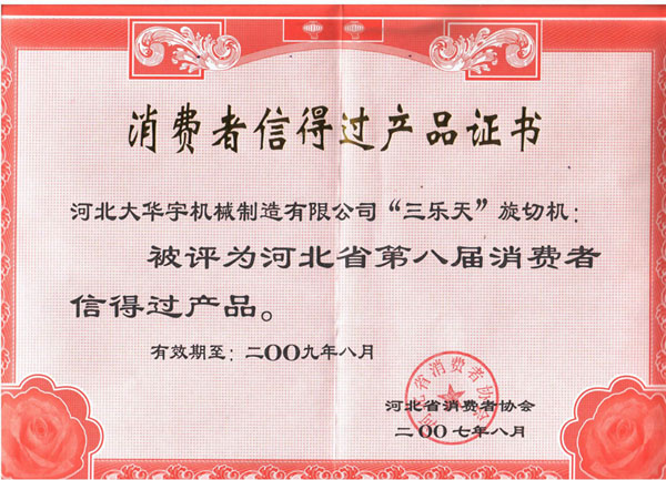 消費(fèi)者信得過(guò)產(chǎn)品證書